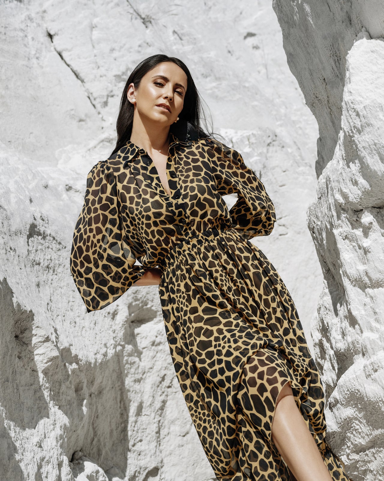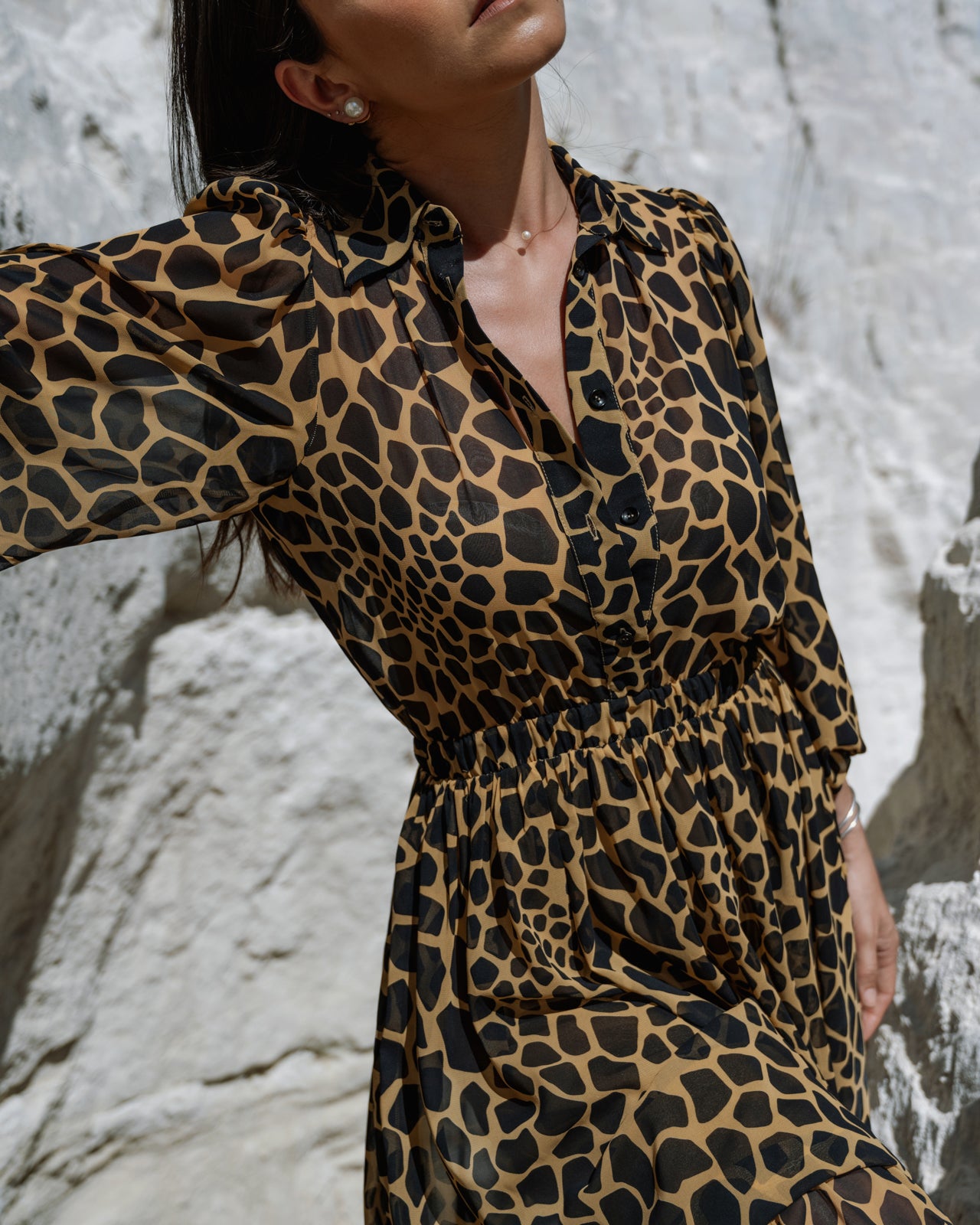 Channel your inner wild spirit with The Giselle, a timeless masterpiece. Crafted in a luxurious, lightweight fabric, this dress features an alluring animal print that exudes both sophistication and a daring edge. With billowy sleeves and a flattering, cinched waist, The Giselle is perfect for making a statement wherever you go, from a sunlit afternoon adventure to an elegant evening soirée. Let The Giselle be your ultimate expression of fearless elegance.
